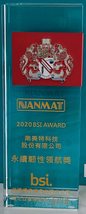獲頒英國標準協會台灣分公司 BSI 永續韌性領航獎-2020/11/19