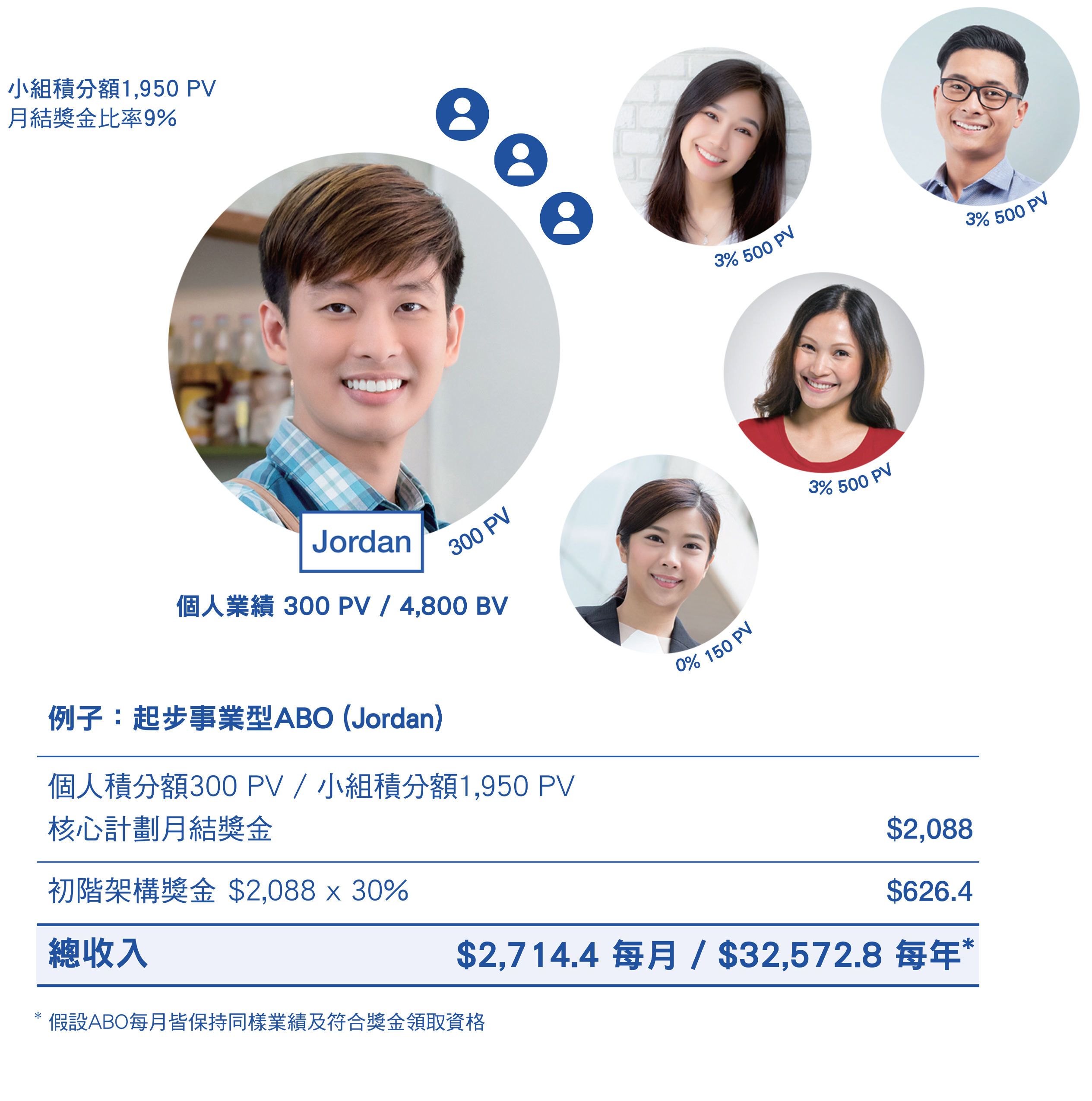 2. 每戶每月領取「初階架構獎金」者之獎金上限為港幣$20,500。